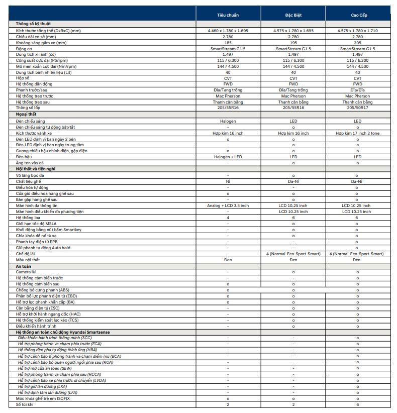 Ðộng cơ xăng SmartStream G1.5 sản sinh công suất cực đại 115 mã lực tại 6300 vòng/phút và đạt momen xoắn cực đại 144Nm tại 4500 vòng/phút